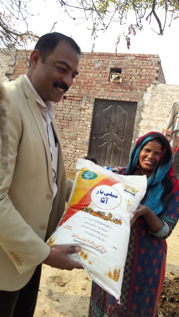 Rev. Bishop Waseem Anjum Bhatti is seen here handing over flour to the needy
